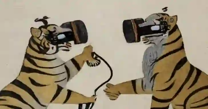 再说说前不久被科技圈津津乐道的“东方名画”——虎戴VR。脑洞大开的外国网友,不按套路向谷歌人工智能作画系统Imagen,输送了指令:给宋代的东方老虎佩戴VR。结果产生了一系列毫无违和感的作品,谁看了都得说一声:谷歌,牛X!