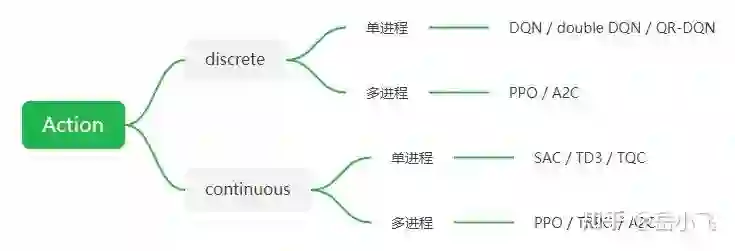 在 RL 中没有万金油,使用哪种算法取决于具体的需求和问题。首先要区分 action space 是 discrete(比如上下左右) 还是 continuous(比如达到某个速度)?