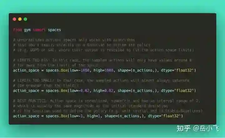 大多数 RL 算法处理 continuous aciton 是基于 Gaussian 分布(最初中心在 0,方差为 1)。因此,如果你忘了 normalize 自定义环境中的 action space,会导致学习很难,调试难上加难(见 issue #473)。