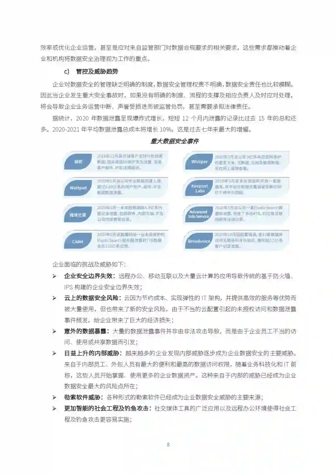 有别于传统网络安全,数据安全需清晰理解其根本,包括数据治理、数据资产管理、数据安全 理治等,才能从上而下建立健全数据安全制度、数据资产体系、数据分类分级准则、数据全生命周 期保护规范,再结合不同的数据安全技术能力,提升数据安全水平。