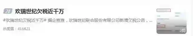 #欢瑞世纪欠税近千万#话题登上微博热搜。当日晚间,欢瑞世纪在微博发表声明,回应公司欠税等相关消息。