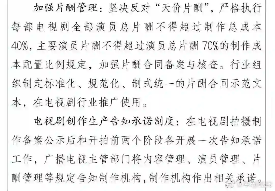 广电总局:演员总片酬不得超过制作成本40%,主演片酬不得超过总片酬70%