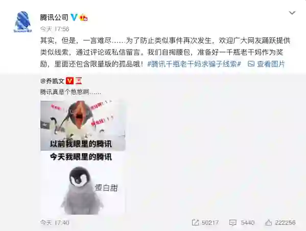 腾讯回应“被骗”:以1000瓶老干妈为礼品征求骗子线索