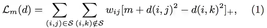 具体的来说就是通过学习一种数据与数据间的距离度量形式,将现有的数据映射到第三方空间,通过学习到的距离度量来衡量数据间的similarity,度量在数学上满足三角不等式,及两边的长度和不小于第三边,例如与