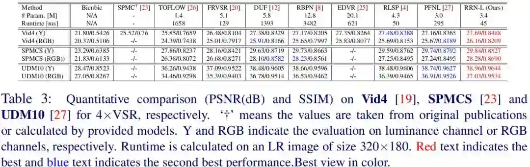 作者通过充分的实验表明:所提RRN计算高效同时可以生成时序一致的超分结果,且具有更好的纹理细节。除此之外,所提方法在公开基准数据集取得了SOTA性能。