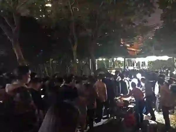 傍晚时分,南山的街上总能看到一辆接着一辆的大巴车,都是企业的接驳车。下班的人群依旧走得飞快,但神情比起白天已经缓和了很多,人群中不时能听到闲谈和笑声。6点半,高新园和深大两站地铁口准时开始限流,地铁口卖小吃的摊贩忙得抬不起头。