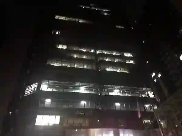 凌晨一点,一家互联网公司大楼里依旧灯火通明。澎湃新闻记者 沈文迪 图
