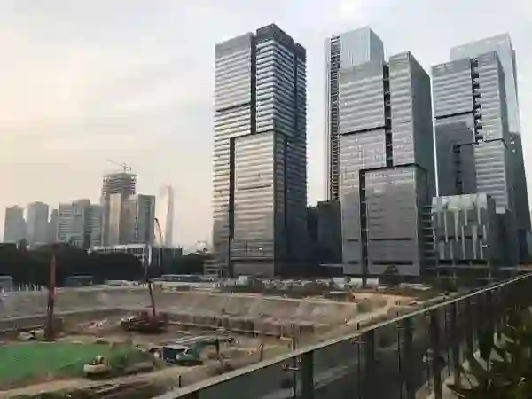 在高楼大厦之间,还有新的楼盘在建设。澎湃新闻记者 沈文迪 图