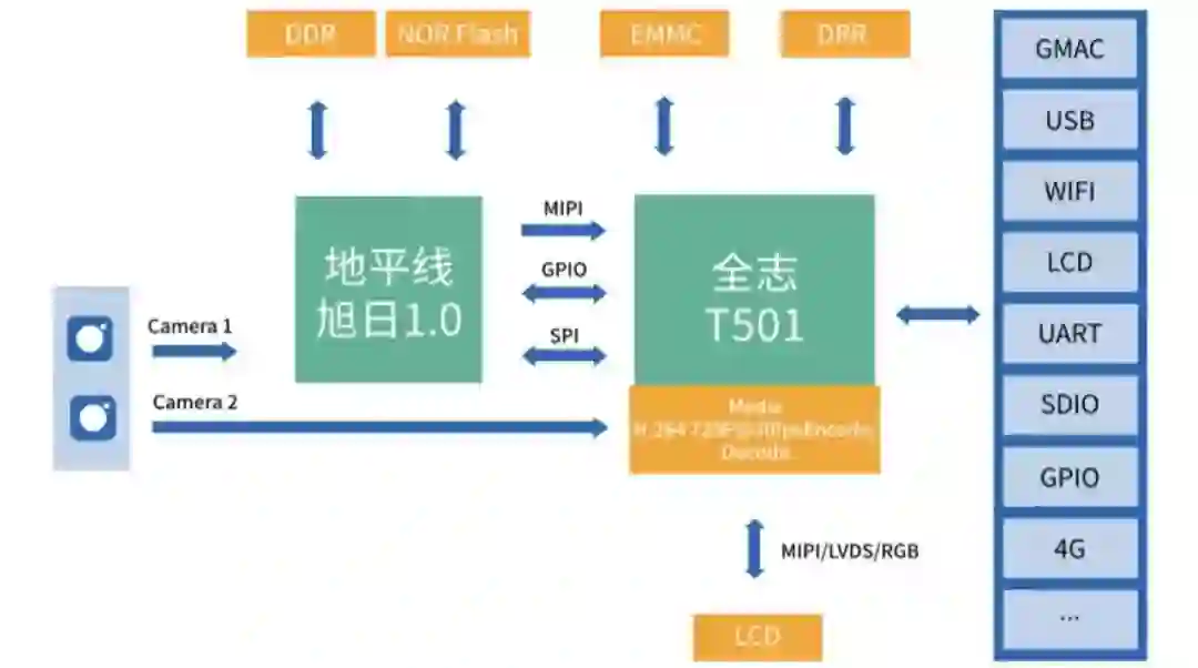 支持MIPI CSI、MIPI/LVDS/RGB Display、LVDS、USB、Audio Codec等丰富接口;