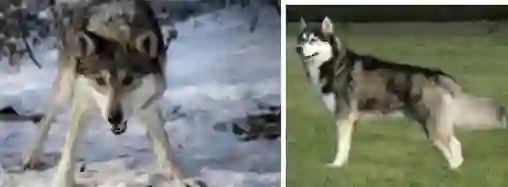 对于神经网络的工作原理,有一个形象的例子,那就是哈士奇还是狼(husky or wolf)的问题[1]。大部分人都可以很正确地判断出左图中的动物是狼,而右图中的动物是哈士奇,这两个图对人而言还是相对不难。不出意外地,神经网络模型也能够把这两张图分得很准。