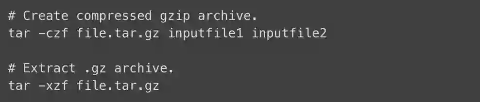 Tar 是用来处理文件压缩的默认 Unix 工具。它能让你快速的将多个文件打成一个包,这样在后续就更加容易存储和移动它们了。