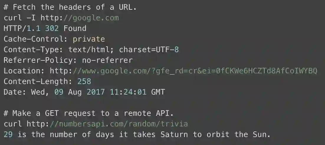 Curl 是一个命令行工具,用来通过 HTTP(s),FTP 等其它几十种你可能尚未听说过的协议来发起网络请求。它可以下载文件,检查响应消息头以及方便地访问远程数据。