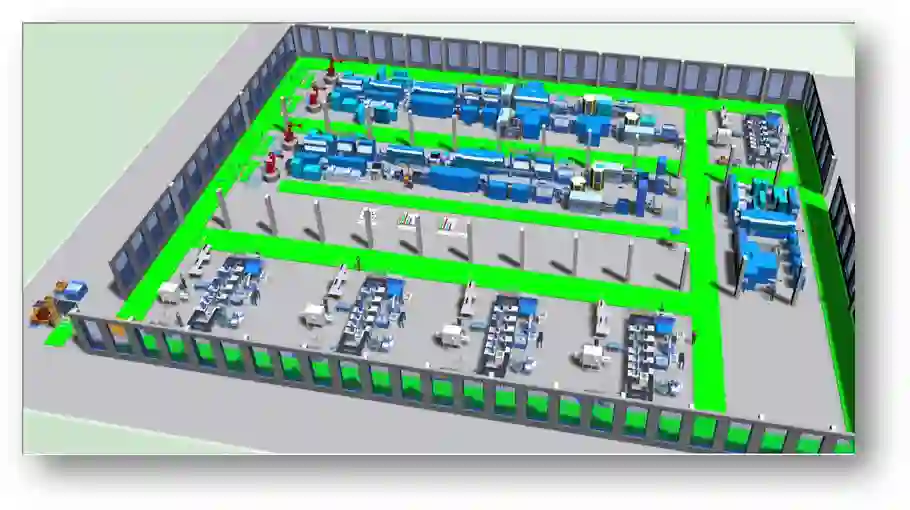 利用 “数字化工厂系统仿真”的数字孪生技术对工厂整体布局物流规划进行分析优化,可以对不同的工厂布局和物流方案进行仿真评估,在工厂真正落地之前即可对工厂的产能、物料配送方式和路径、出入库能力、设备利用率等实际运行情况进行预测和演示,提供建设方案依据,以最优的方案、最优投入成本来建设自动化物流系统。