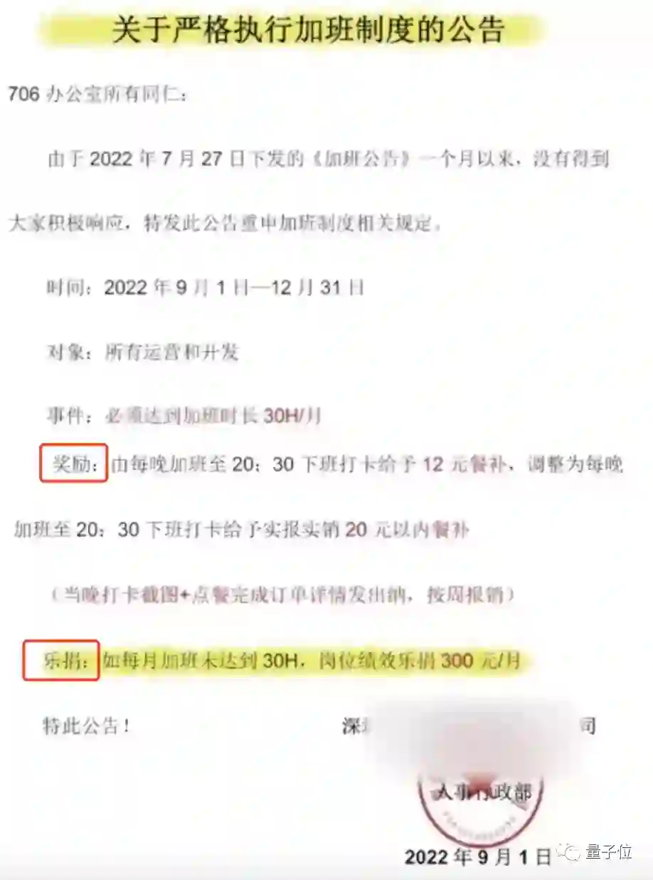 这项规定被白纸黑字地落在公司新发布的加班公告中。