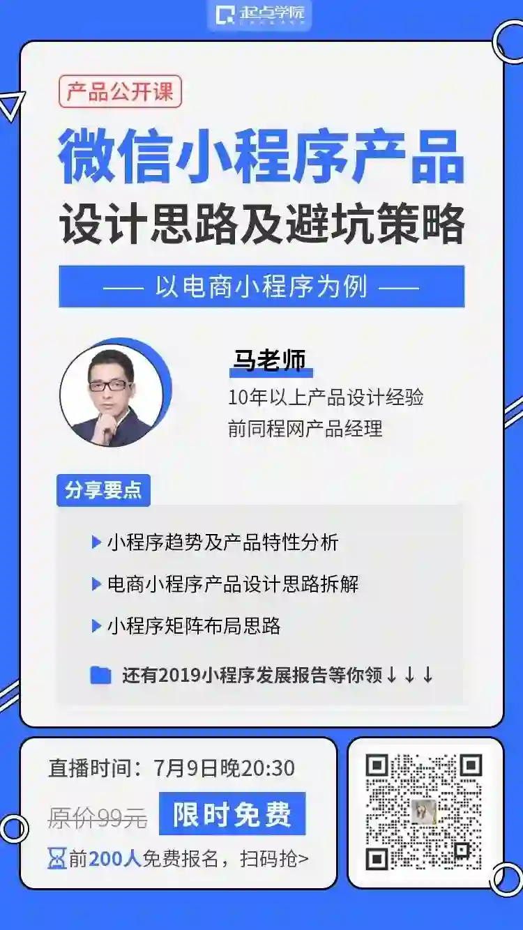 基于以上问题,起点学院特邀业内资深产品老司机@马老师,以电商小程序为例,带你拆解——