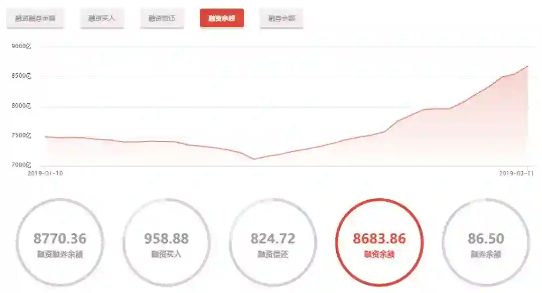 截至3月11日,两市融资余额共8683亿元,继续攀升。