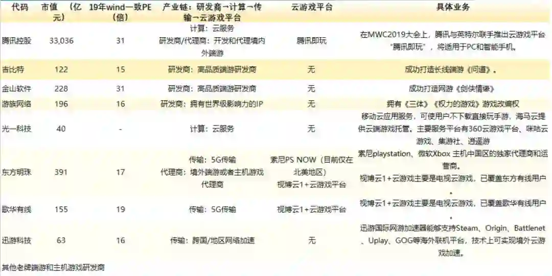 另外,“云游戏”可能成为市场炒作的主题,我们提供产业链图如下: