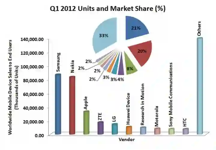 但对于此时的诺基亚来讲,虽然2012年第一季度搭载塞班系统的手机仍然有千万级别的销量,但已经决定彻底放弃塞班系统,808 PureView这部最后的塞班手机也没办法改变诺基亚在全球手机市场中的颓势。