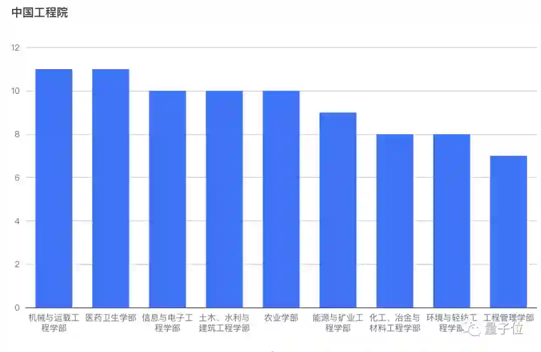 中国工程院新当选院士中,机械与运载工程学部11人,信息与电子工程学部10人,化工、冶金与材料工程学部8人,能源与矿业工程学部9人,土木、水利与建筑工程学部10人,环境与轻纺工程学部8人,农业学部10人,医药卫生学部11人,工程管理学部7人。