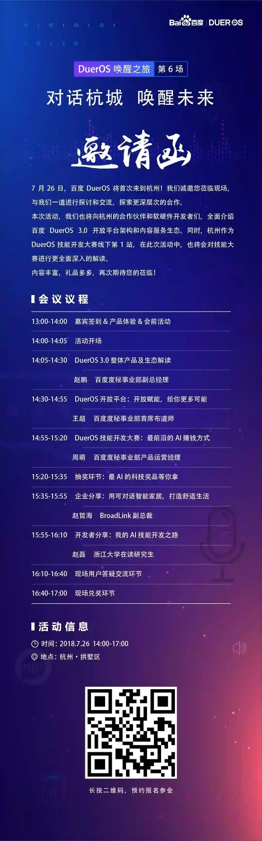 由百度 DuerOS 发起的「唤醒之旅」系列沙龙第 6 场,将于 7 月 26 日来到杭州。
