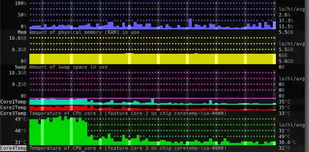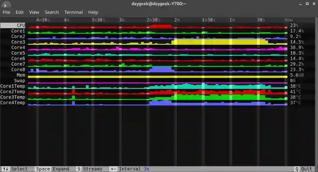 如果你正在寻找系统硬件监控软件,那么我建议你看下 lm_sensors[3] 和 s-tui 压力终端 UI[4]。