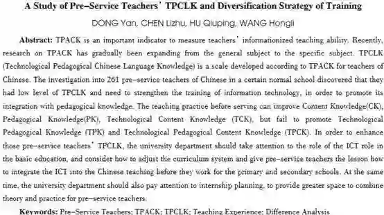 关键词:职前教师;TPACK;TPCLK;教学实践;差异分析