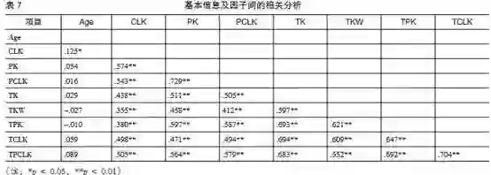 对职前教师年龄(Age)以及TPCLK的8个因子进行相关分析的结果如表7所示。