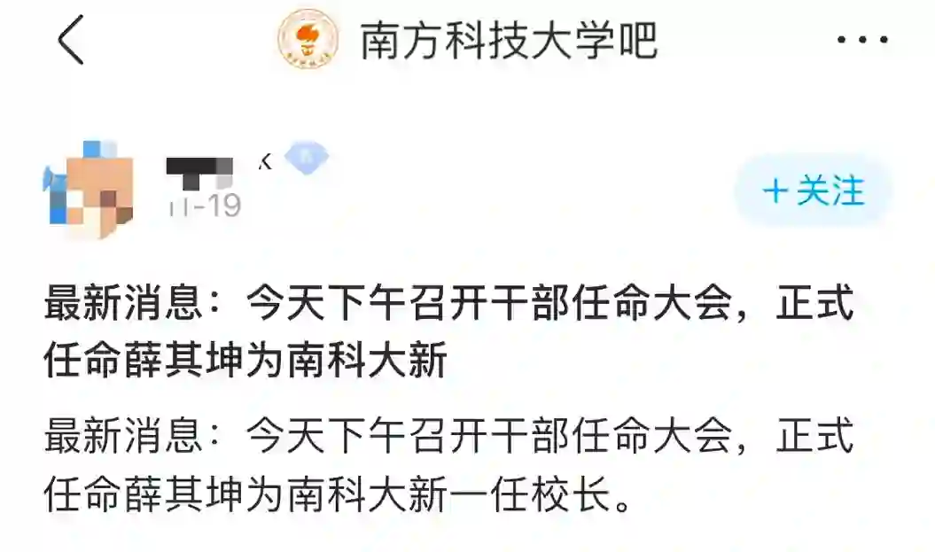 而在「南方科技大学贴吧」上,也有人贴出了「南方科技大学干部大会」的现场照片,并称「新校长来了」。