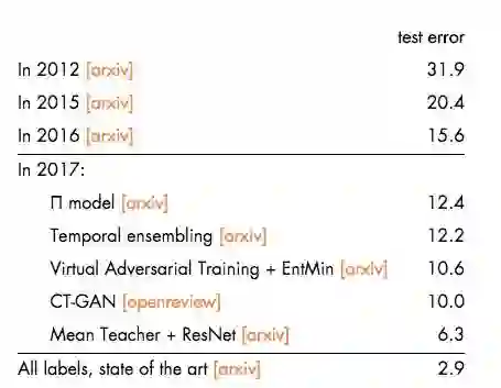 (测试误差:10.6)In 2017:Virtual Adversarial Training + EntMin :https://arxiv.org/abs/1704.03976