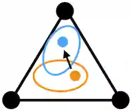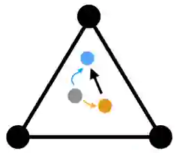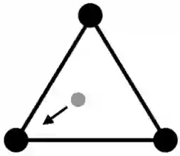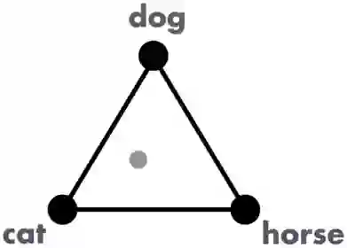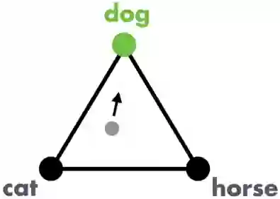 输出则是一个预测,表示为本图像从属于每个类别的概率。例如,分类器可能会给出这样一个预测:这个图片有 50% 的概率是猫,30% 的概率是狗,20% 的概率是马。我们可以在一个三角形中将其可视化表示: