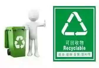 国际通用的循环再造标志就是一个绿色的、摆放成三角形的莫比乌斯带,如垃圾回收标志。