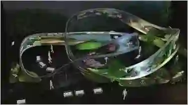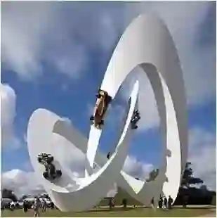 一年一度的英国古德伍德速度节上,为莲花汽车公司设计的雕塑,以类似莫比乌斯环的无限延伸空间向人们展示了汽车竞速的无限乐趣,无论是形体还是构思都让人无比震撼。