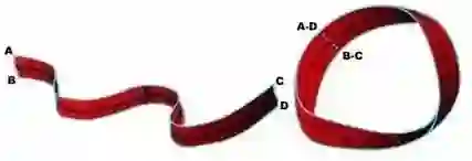 如莫比乌斯所做的,只要将一个长方形纸条ABCD的一端AB固定,另一端CD扭转180度后,把AB和DC粘合在一起就可得到一条莫比乌斯环。