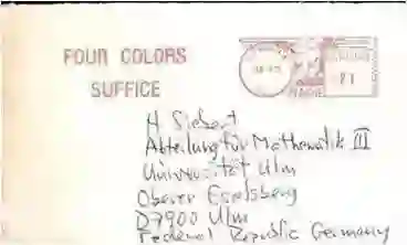 1976年美国数学家阿佩尔(K.Appel)与哈肯(W.Haken)宣告借助电子计算机,用了1200个小时,作了100亿判断,终于完成了四色定理的证明。问题也终于成为定理,这是第一个借助计算机证明的定理。据说,当两位数学家将他们的研究成果发表的时候,当地的邮局在当天发出的所有邮件上都加盖了“四色足够”的特制邮戳,以庆祝这一难题获得解决。当然,不少数学家并不满足于计算机取得的成就,他们认为应该有一种简捷明快的书面证明方法来证明四色问题。