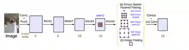 与 DeepLabv2 和空洞卷积论文一样,该研究也使用空洞/扩张卷积来改进 ResNet 模型。改进后的 ASPP 包括图像层级特征连接、一个 1x1 的卷积和三个 3x3 的不同比率空洞卷积。每一个并行卷积层之后使用批量归一化操作。