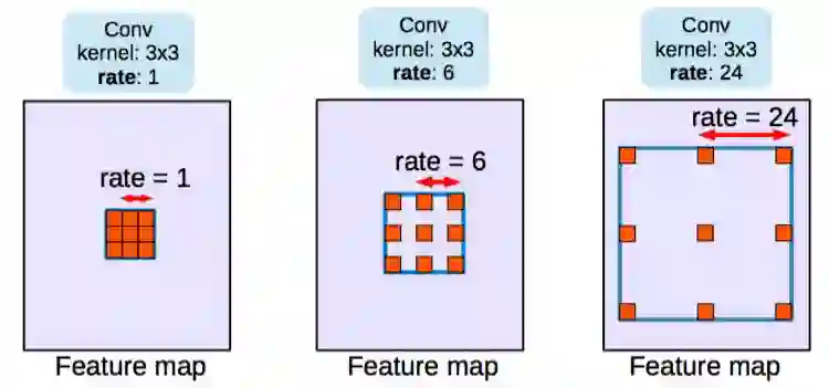 Dilated/atrous 卷积,rate=1 是典型的卷积结构