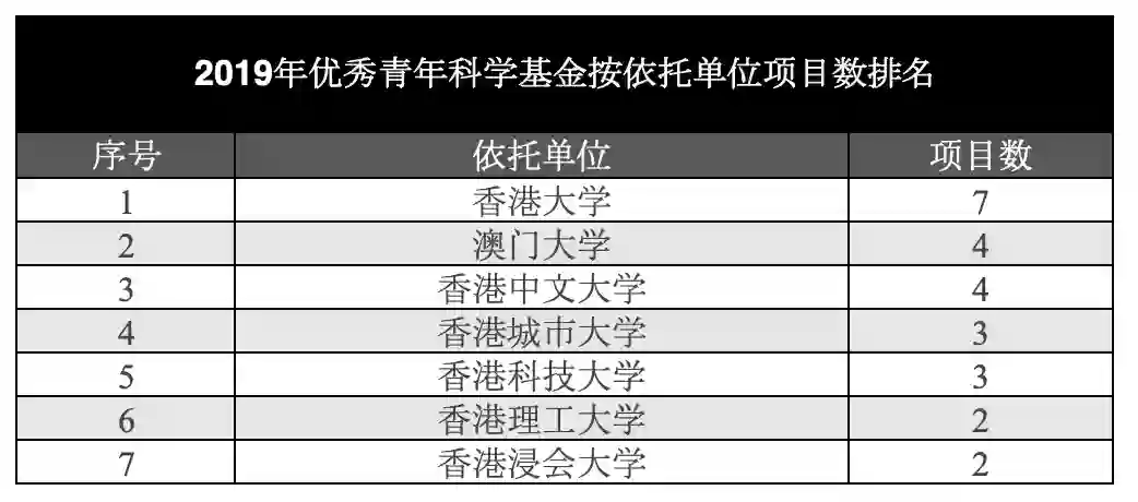 所涉及的依托单位分别是香港大学、澳门大学、香港中文大学、香港城市大学、香港科技大学、香港理工大学以及香港浸会大学。