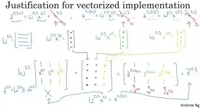 假定在m个训练样本的神经网络中,计算神经网络的输出,用向量化的方法去实现可以避免在程序中使用for循环,提高计算的速度。