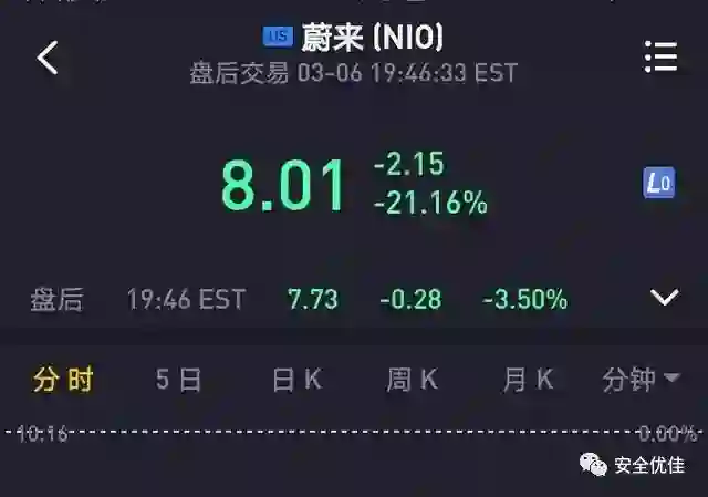 3月7日消息,发布财报后,蔚来汽车股价出现大跌,截至周三收盘,蔚来汽车报8.00美元,跌幅达21.26%,市值82.08亿美元。