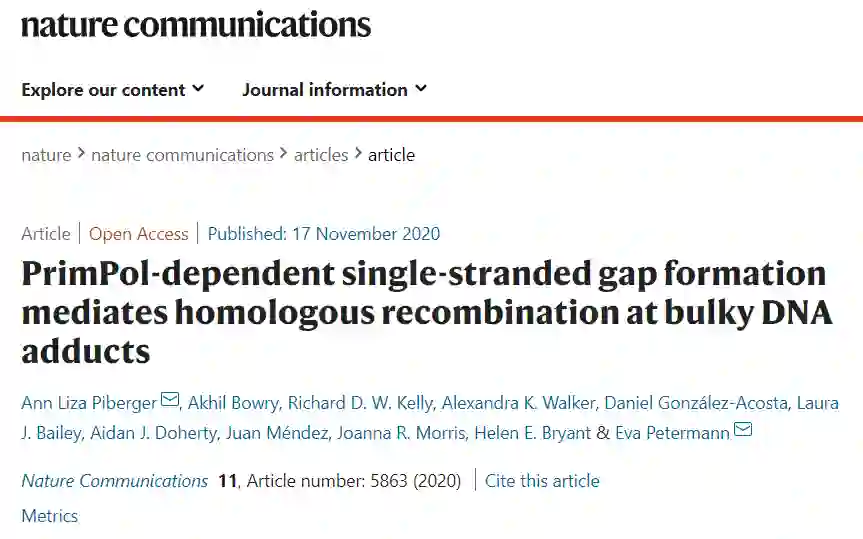 这项最新的研究通过分子生物学方法详细描述同源重组途径,研究结果提供了新的见解,表明同源重组修复通过一种不寻常的机制在 BPDE 加合物过程中被激活,即使没有停止或崩溃的复制分叉,也可以激活该进程。而且它在 DNA 中的单链缺口被激活,这些缺口是由 PrimPol (一种由 PRIMPOL 基因编码的蛋白质) 激活产生的。此外,这些复制后的缺口是由 PrimPol 产生的,这也揭示了 PrimPol 在 DNA 耐受损伤过程中的作用。