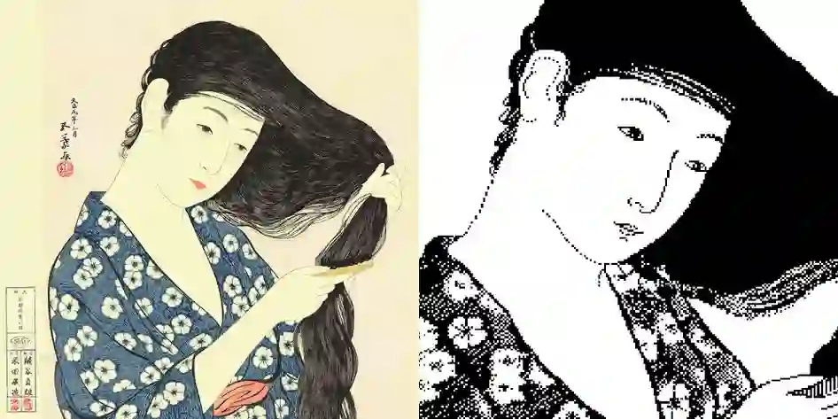 乔布斯的私人藏品:日本艺术家桥口五叶的木刻,右侧的图像用后来做了MacPaint的宣传材料。