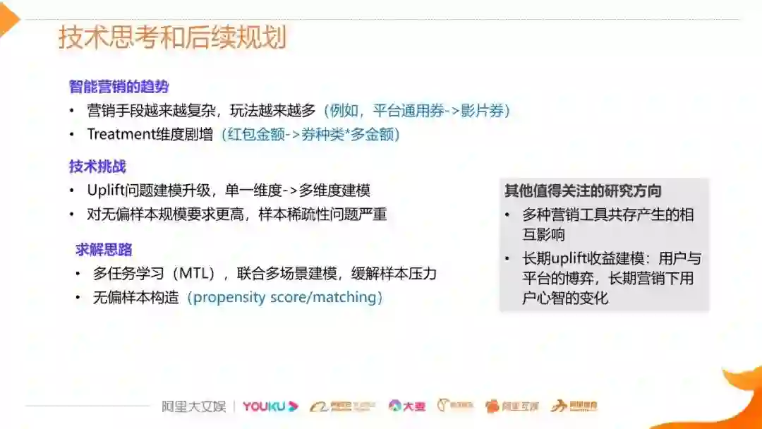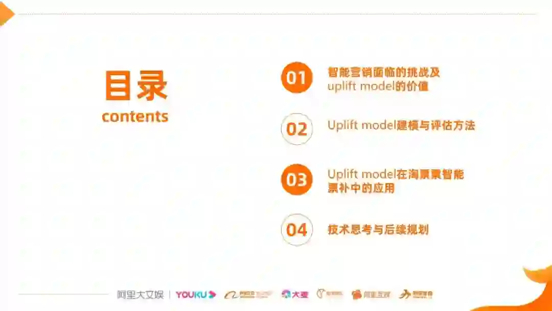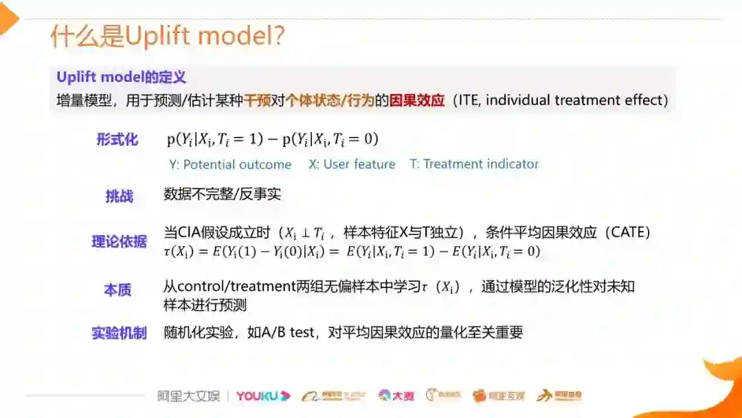 本次直播分享了营销增益模型的原理和常见的建模及评估方法,并以淘票票智能票补为例介绍uplift model技术的实践经验。