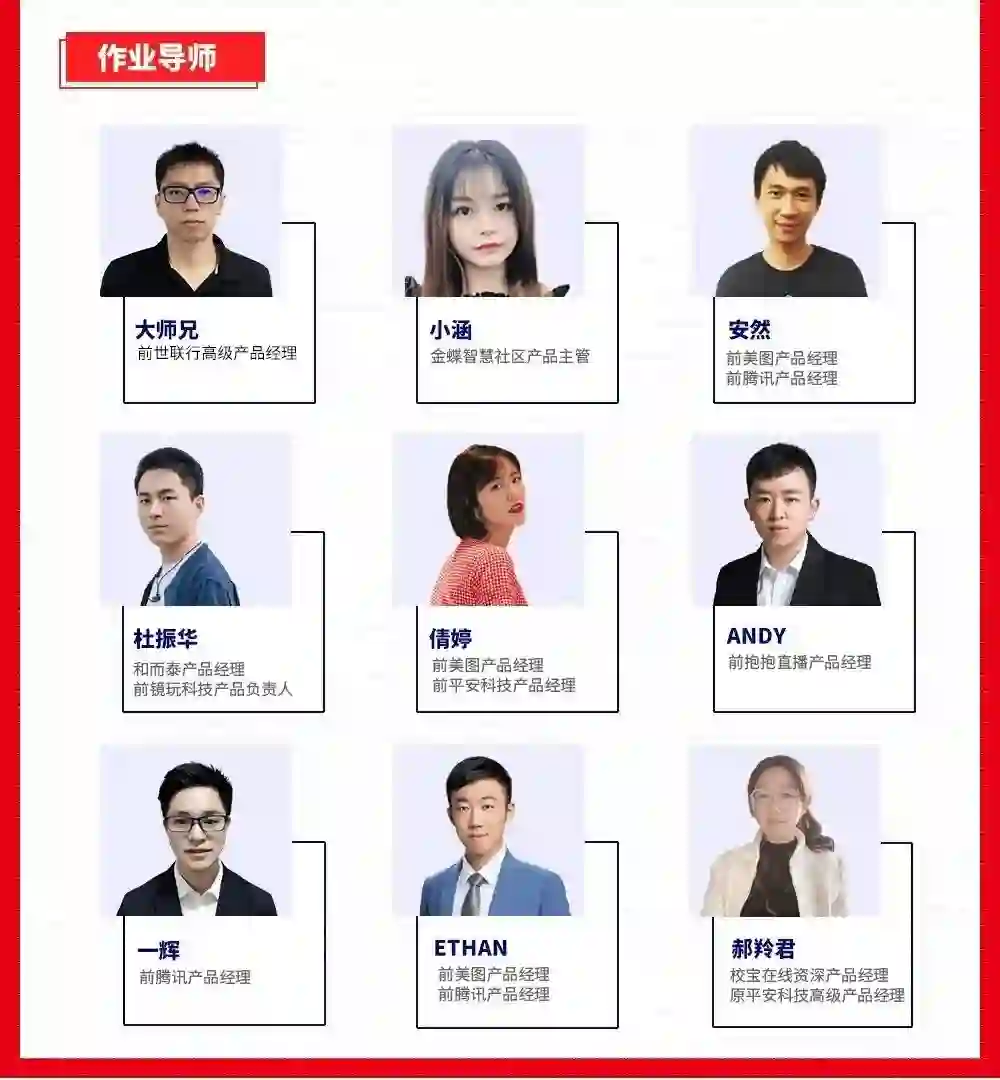 说起来我当时报课主要是被起点学院这边众多大厂导师的资源所吸引,感觉可以跟他们学习优秀的产品思维、产品设计方法。