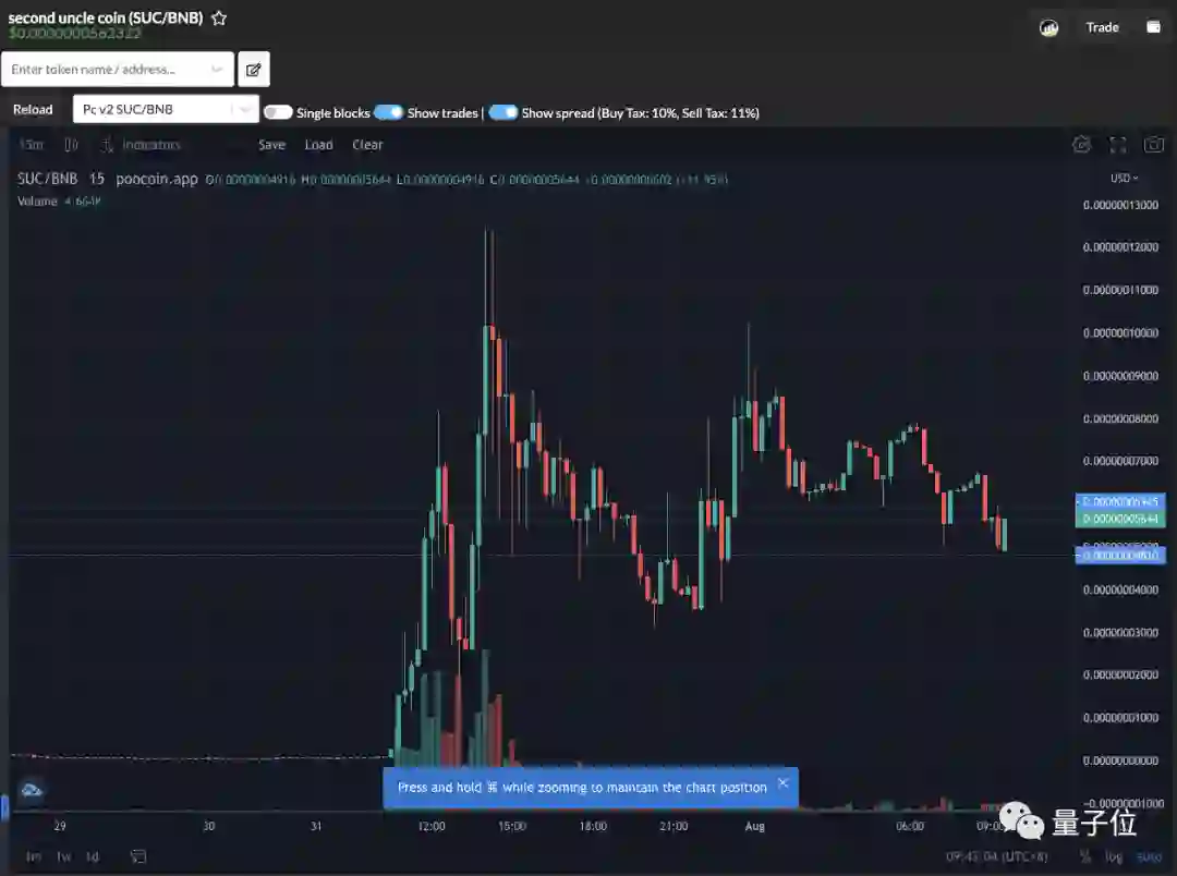 有安全专家发推特表示,二舅币池发生rugpull(拉地毯,一种加密货币骗局的通俗术语),合约部署者已通过tornado cash清洗赃款,截至目前代币suc价格已下跌99.7%。