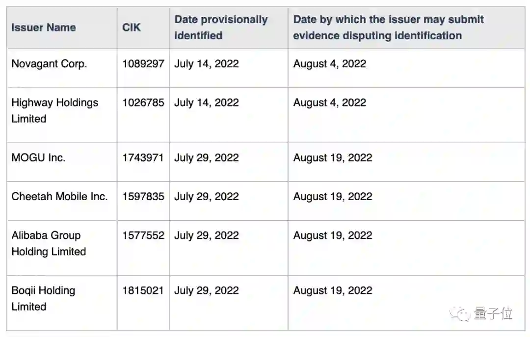 除阿里巴巴外,此次被列入名单的还有蘑菇街、波奇宠物、猎豹移动等公司。
