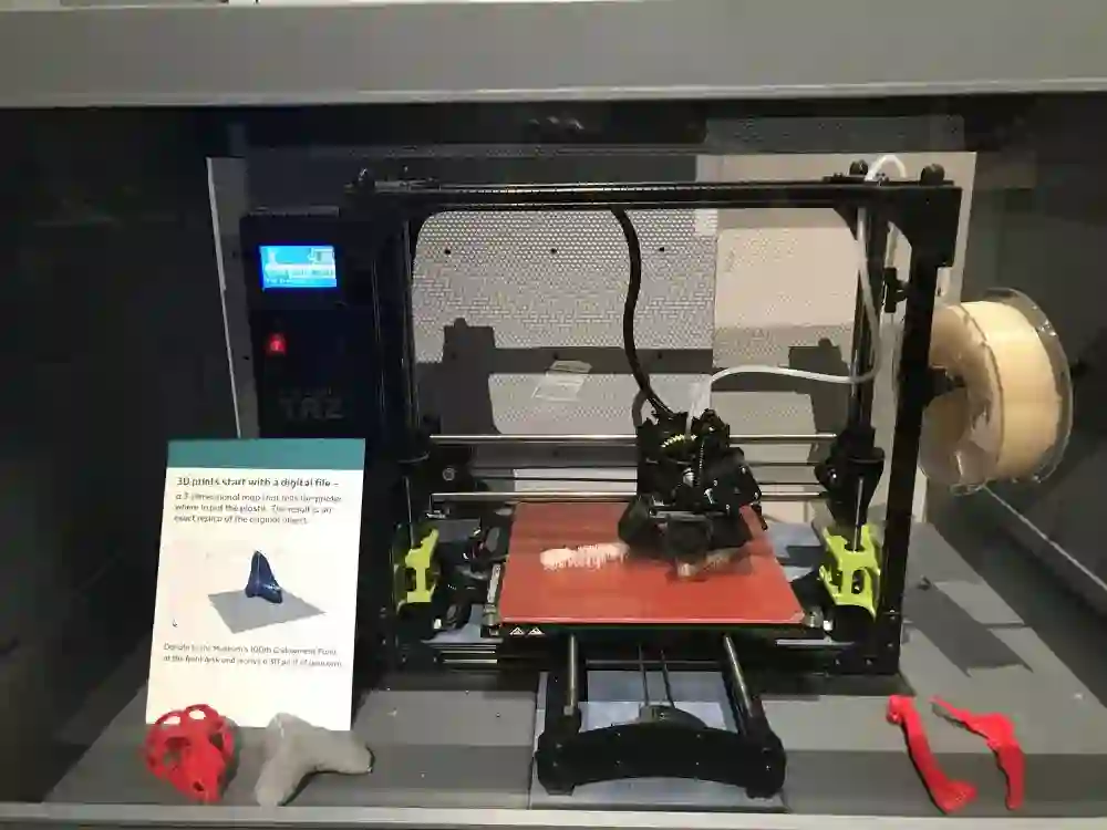 17. 3D打印机在古生物学研究上的引用,打印机正在打印一块骨头。
