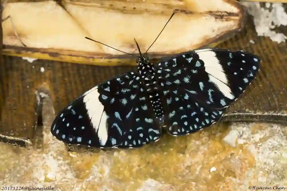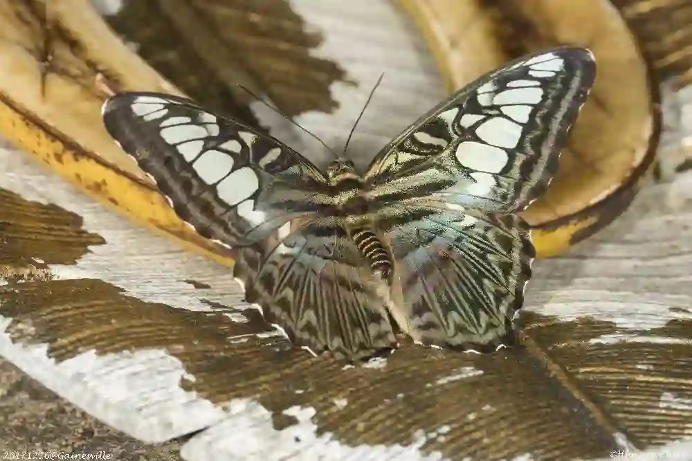 6. Parthenos sylvia,丽蛱蝶,产自南亚和东南亚。正在取食人工摆放的香蕉。