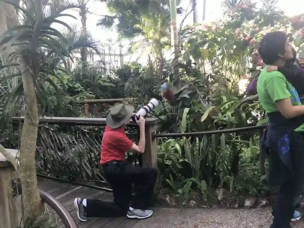 当然,我最喜欢的还是蝴蝶馆。蝴蝶馆其实叫蝴蝶雨林(Butterfly Rainforest),是一个模拟热带雨林的室内缩影,里面种植着各种热带树木和五彩缤纷的开花植物,有小瀑布和小溪,还有人行小道蜿蜒穿梭其中。林中飞着几百上千只来自世界的各种蝴蝶和一些小鸟,水中有鱼和龟。虽然参观者人影幢幢,还是可以品到一点热带雨林特有的味道。