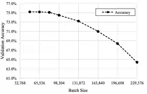 如表 1 所示,与其他工作相比,81,920 mini-batch size 已经很大,验证精度达到 75% 以上。
