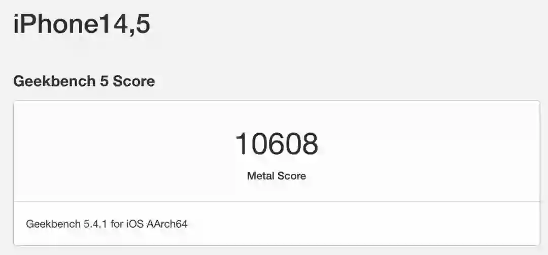 iPhone 13的Metal得分明显低于iPhone 13 Pro的14216分。